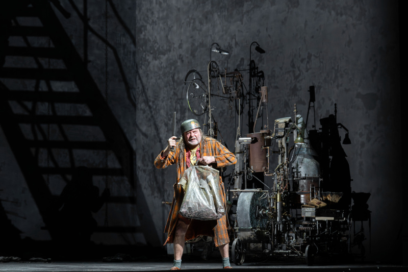 Siegfried’s forging scene becomes a theatrical spectacle of astonishing imagination. He brings on stage complex, almost surreal machinery—unlike anything one has seen before—accompanied by noise, smoke, and fire as the sword is melted down and reforged. Throughout, his exuberant energy never falters.